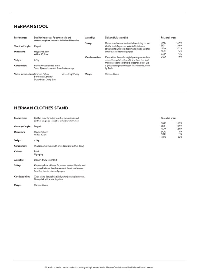 All products in the Herman collection is designed by Herman Studio. Herman Studio is owned by Helle and Jonas Herman