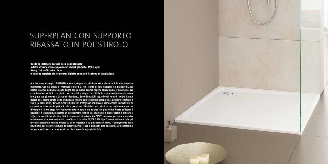 •Soluzione completa che comprende il piatto doccia ed il sistema di installazione