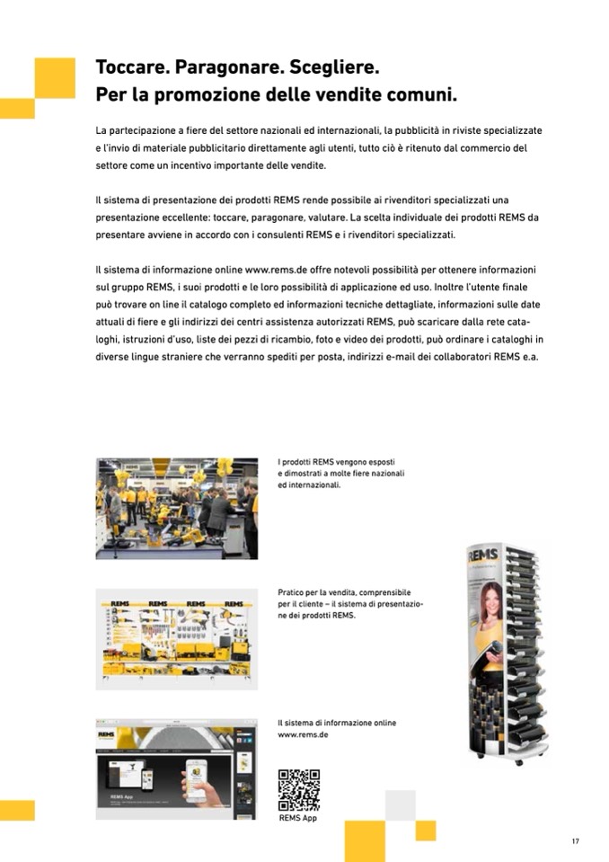 attuali di fiere e gli indirizzi dei centri assistenza autorizzati REMS, può scaricare dalla rete cata-
