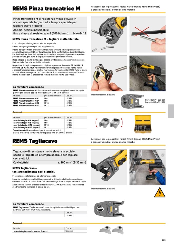 REMS Pinza troncatrice M. Pinza troncatrice con una coppia di inserti da taglio