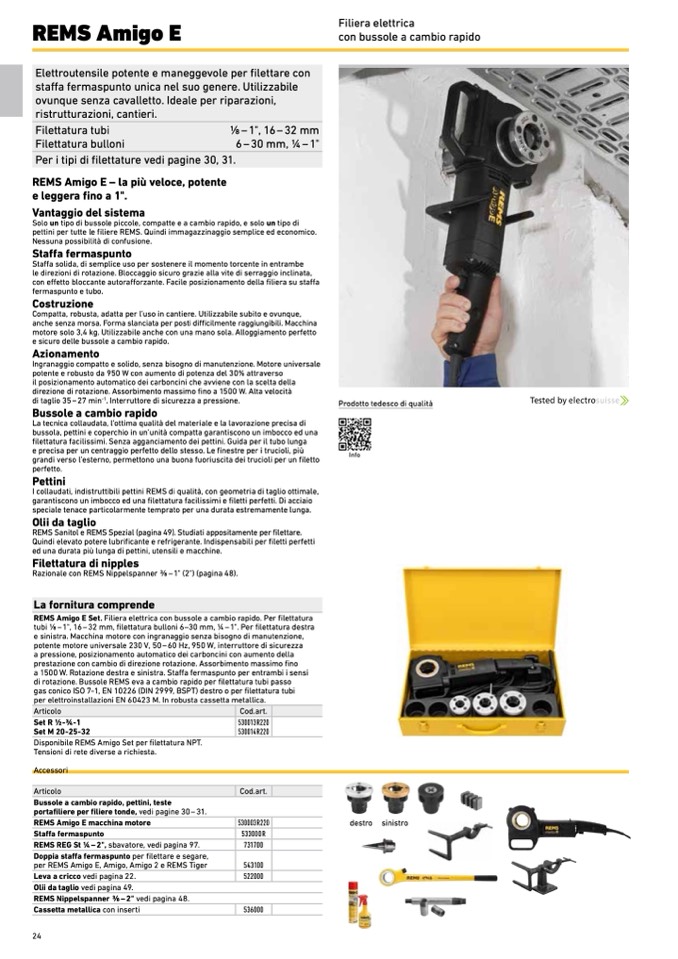 REMS Amigo E Set. Filiera elettrica con bussole a cambio rapido. Per filettatura