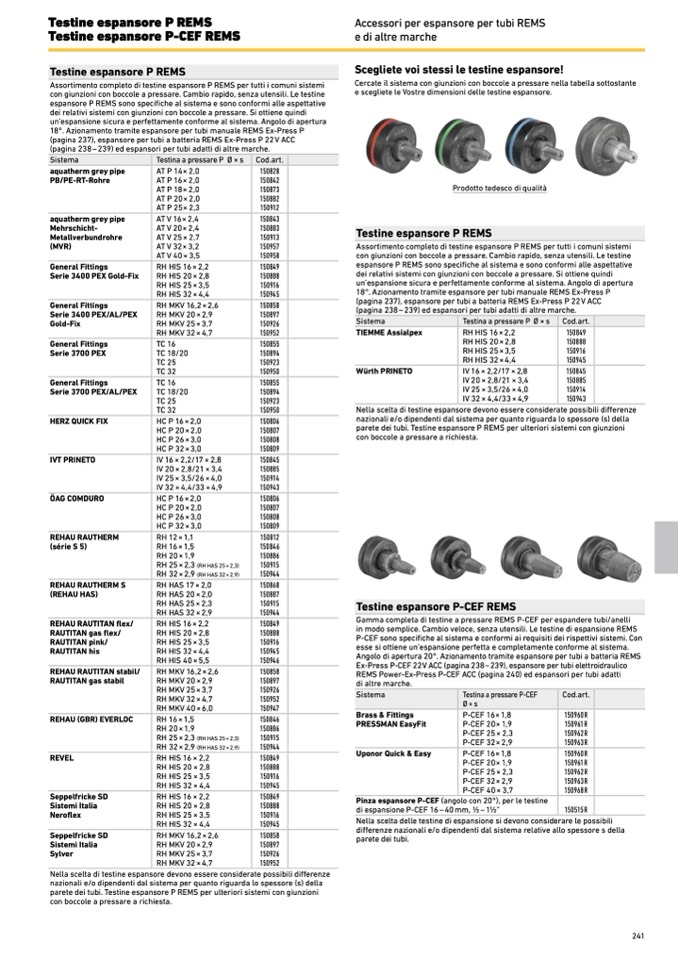 REMS Power-Ex-Press P-CEF ACC (pagina 240) ed espansori per tubi adatti