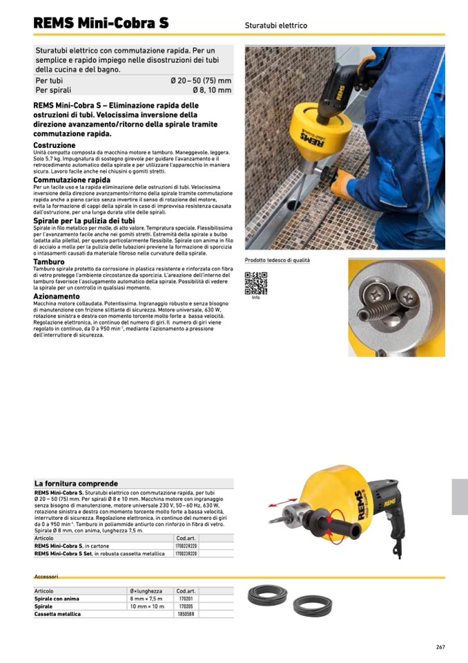REMS Mini-Cobra S. Sturatubi elettrico con commutazione rapida, per tubi