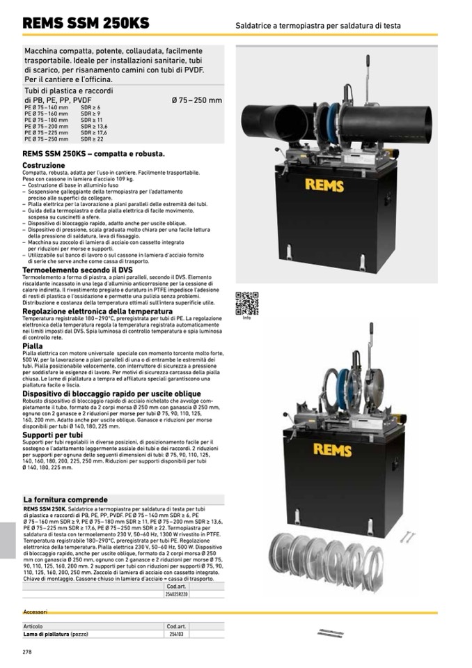 REMS SSM 250K. Saldatrice a termopiastra per saldatura di testa per tubi