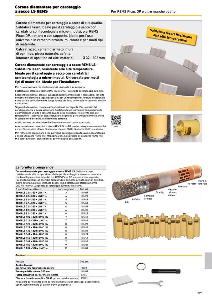 Corone diamantate per carotaggio a secco REMS LS. Saldatura laser,