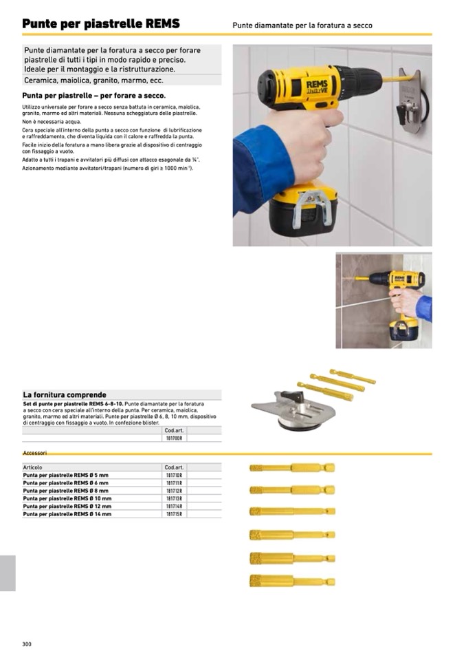 Set di punte per piastrelle REMS 6-8-10. Punte diamantate per la foratura