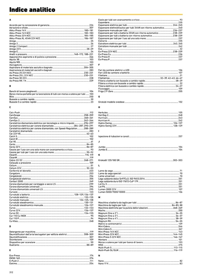 Curvatubi a batteria .............................................................................. 128 – 129, 136 – 137