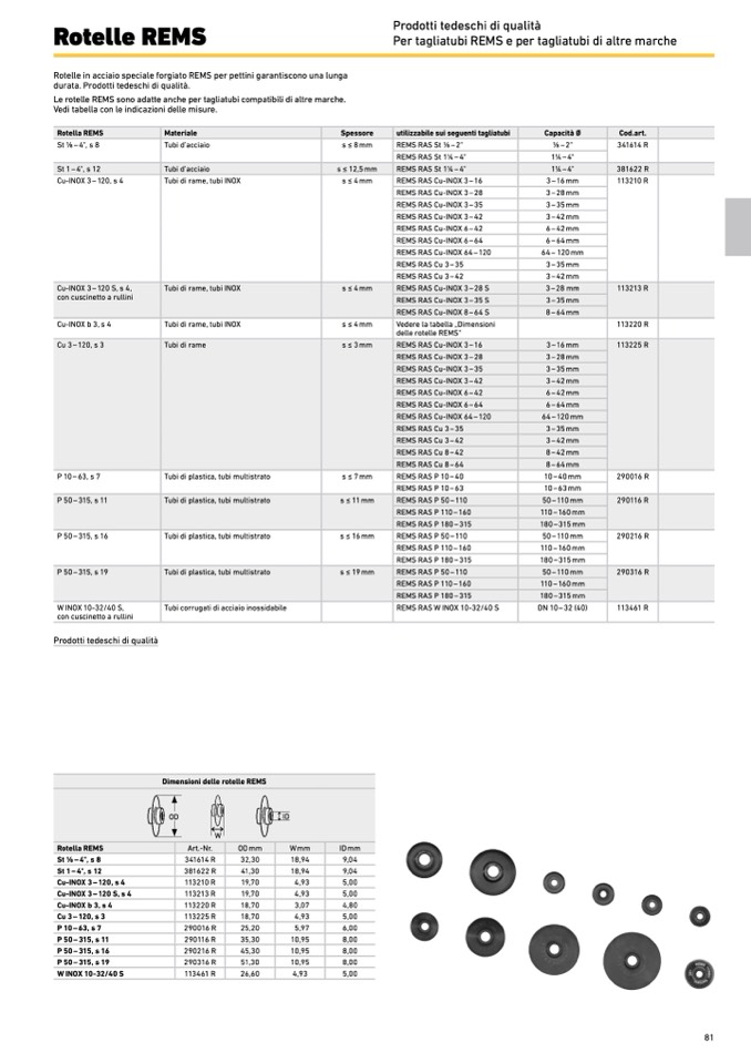 Le rotelle REMS sono adatte anche per tagliatubi compatibili di altre marche.