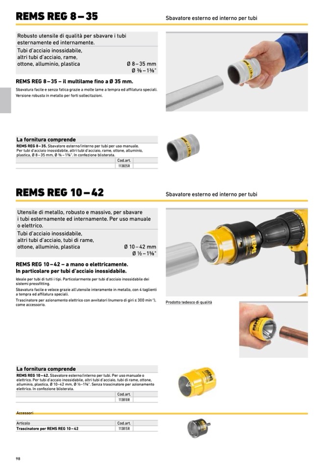 REMS REG 8 – 35. Sbavatore esterno/interno per tubi per uso manuale.