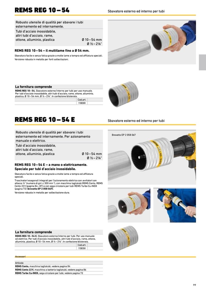 REMS Cento, macchina tagliatubi, vedere pagina 84