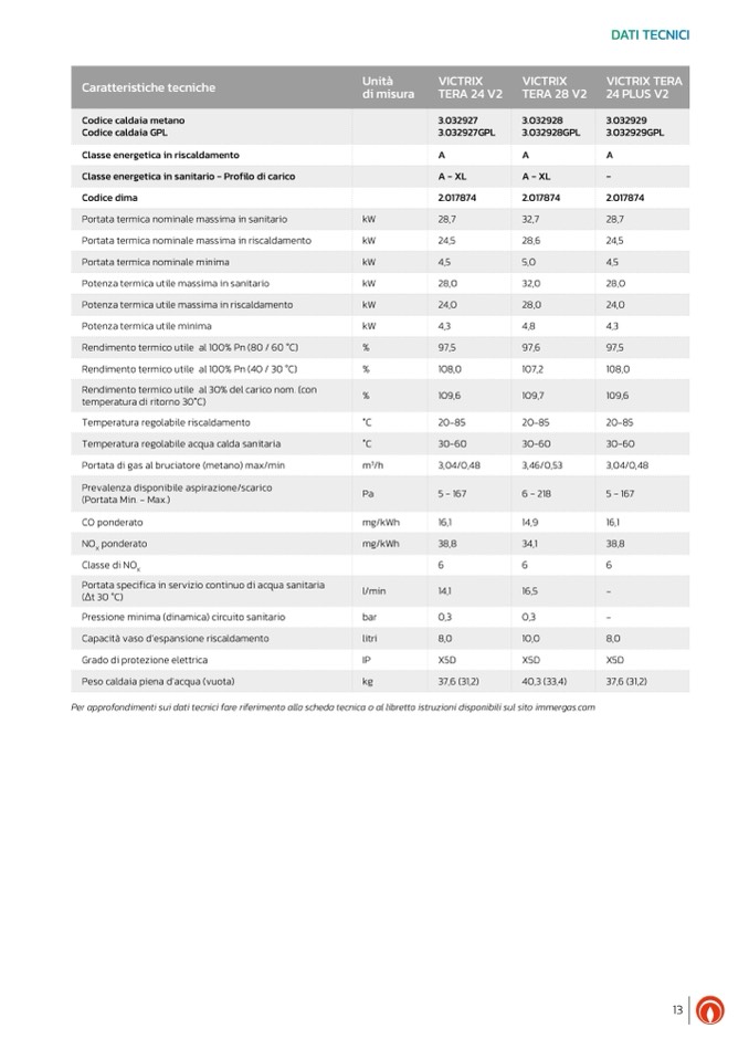 Per approfondimenti sui dati tecnici fare riferimento alla scheda tecnica o al libretto istruzioni disponibili sul sito immergas.com