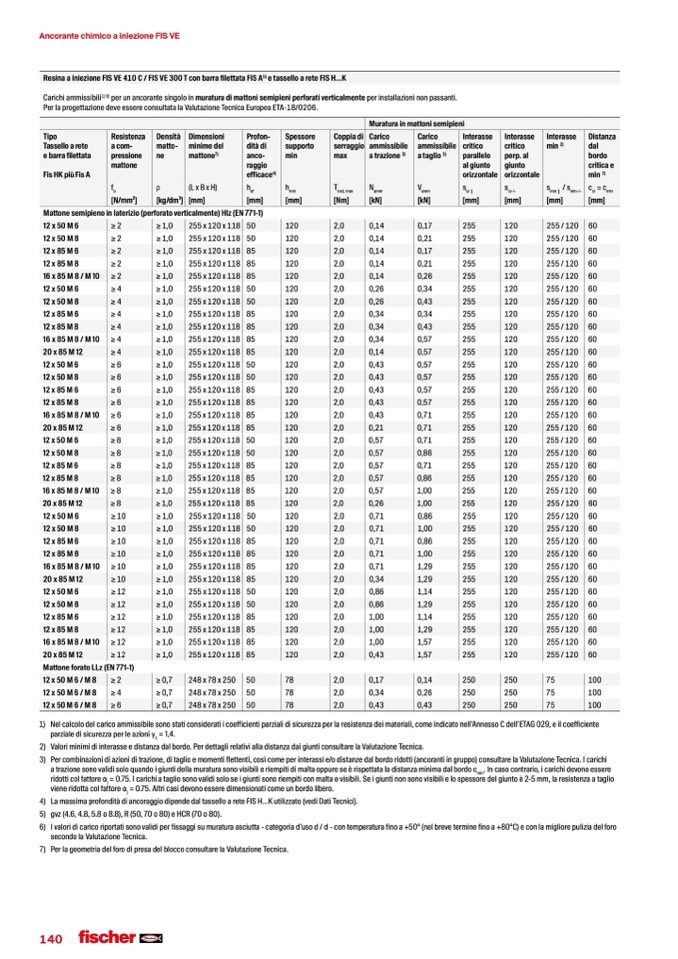 1) Nelcalcolodelcaricoammissibilesonostaticonsideratiicoefficientiparzialidisicurezzaperlaresistenzadeimateriali,comeindicatonell’AnnessoCdell’ETAG029,eilcoefficiente