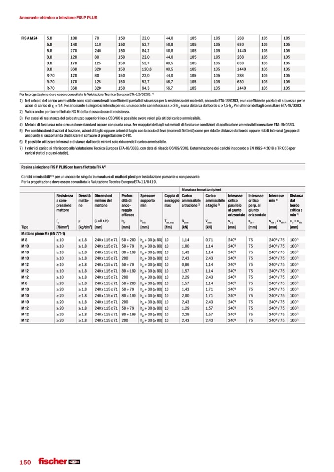 7) IvaloridicaricosiriferisconoallaValutazioneTecnicaEuropeaETA-18/0383,condatadirilascio06/09/2018.DeterminazionedeicarichiinaccordoaEN1992-4:2018eTR055(per