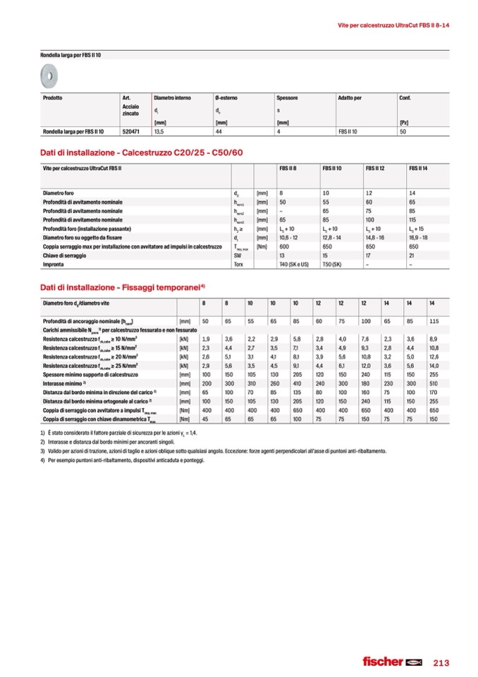 Dati di installazione - Calcestruzzo C20/25 - C50/60