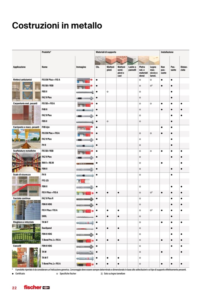 * Il prodotto riportato è da considerare un’indicazione generica. L’ancoraggio deve essere sempre determinato e dimensionato in base alle sollecitazioni e al tipo di supporto effettivamente presenti.
