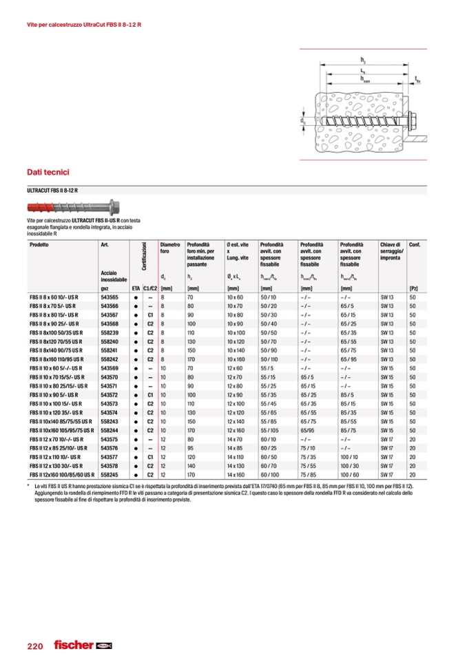 Le viti FBS II US R hanno prestazione sismica C1 se è rispettata la profondità di inserimento prevista dall’ETA 17/0740 (65 mm per FBS II 8, 85 mm per FBS II 10, 100 mm per FBS II 12).