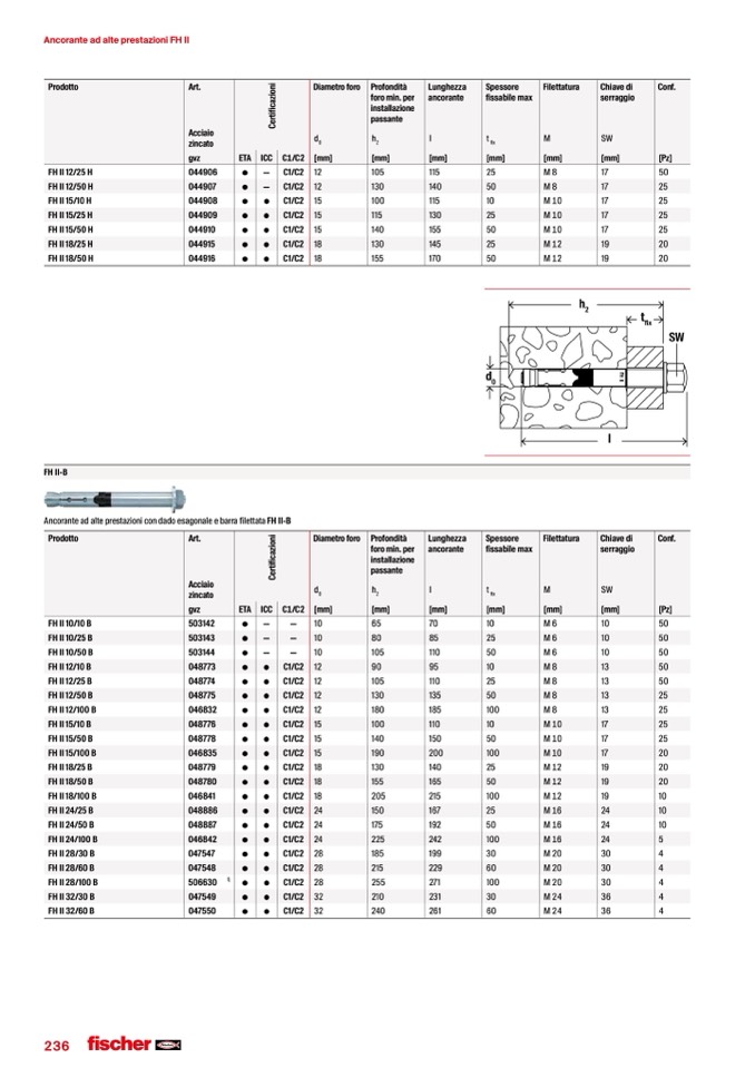 Ancorante ad alte prestazioni con dado esagonale e barra filettata FH II-B