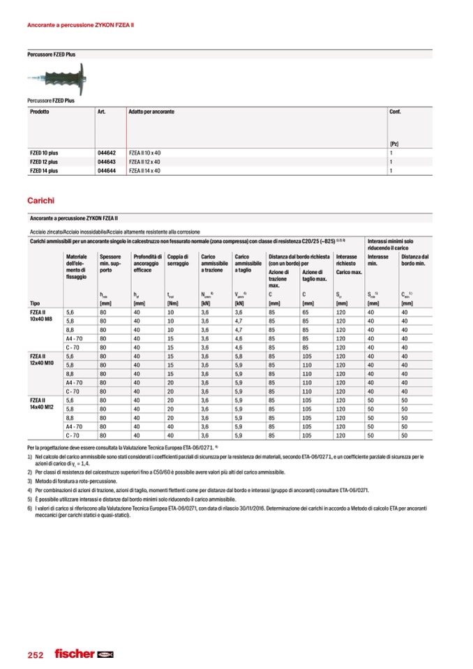 6) IvaloridicaricosiriferisconoallaValutazioneTecnicaEuropeaETA-06/0271,condatadirilascio30/11/2016.DeterminazionedeicarichiinaccordoaMetododicalcoloETAperancoranti