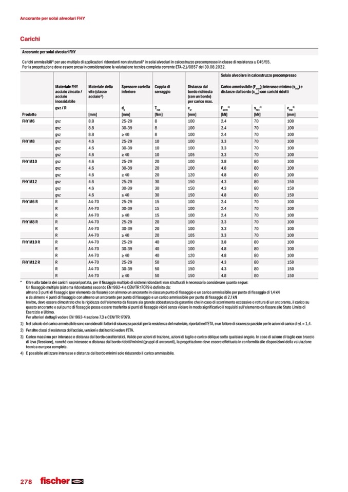 1) Nelcalcolodelcaricoammissibilesonoconsideratiifattoridisicurezzaparzialiperlaresistenzadelmateriale,riportatinell’ETA,eunfattoredisicurezzaparzialeperleazionidicaricodiγL=1,4.