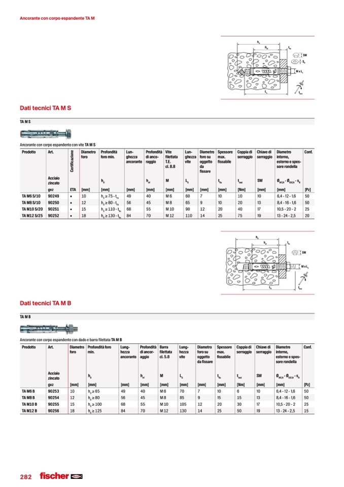 Ancorante con corpo espandente con dado e barra filettata TA M B
