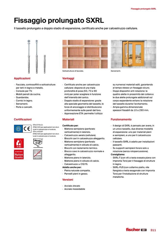 · Il tassello SXRL è adatto per installazioni