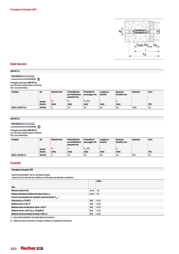 I valori di carico riportati sono validi per viti da legno con diametro specificato.