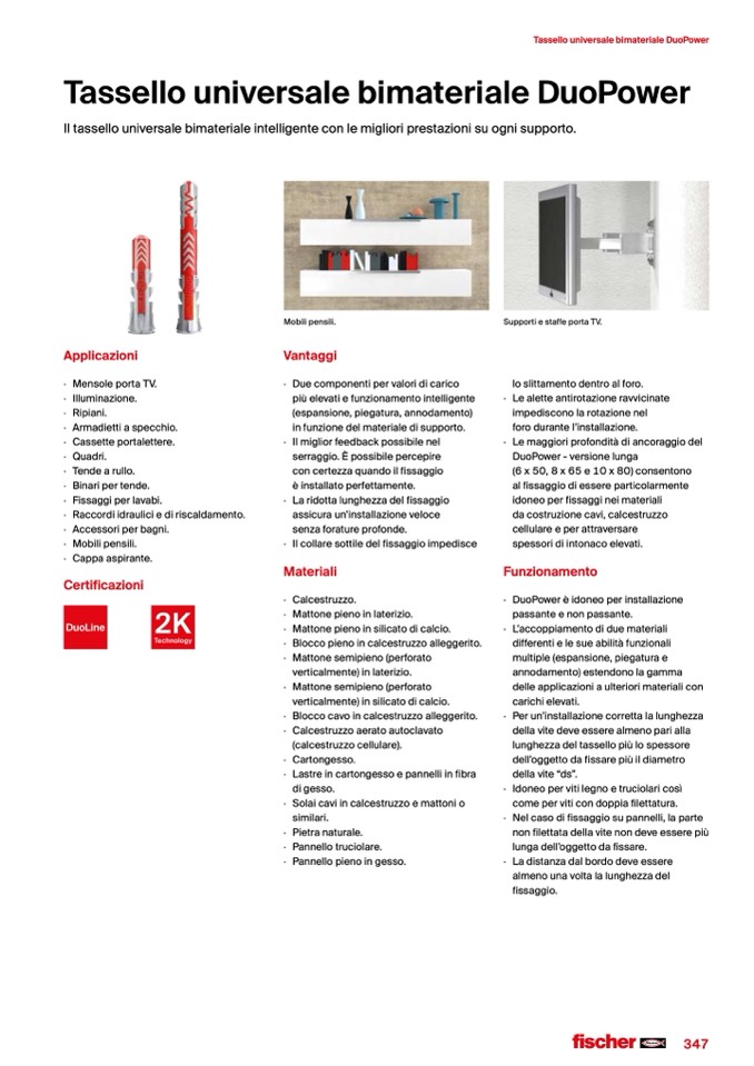 idoneo per fissaggi nei materiali