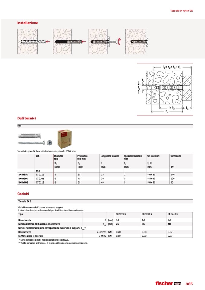 Valido per azioni di trazione, di taglio e oblique con qualsiasi inclinazione.