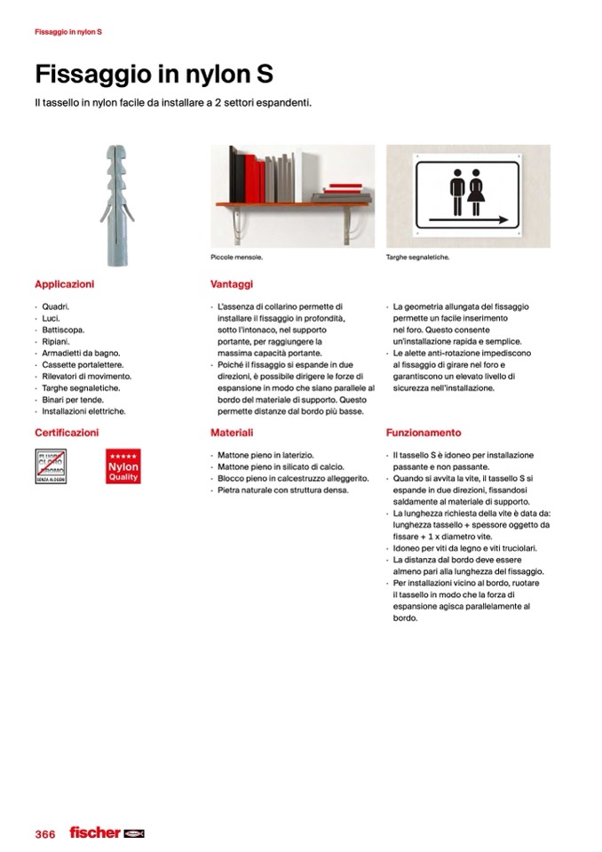 · Il tassello S è idoneo per installazione