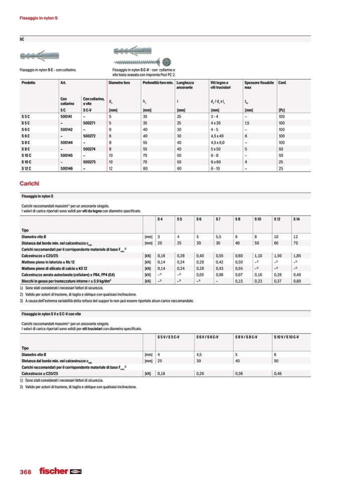 I valori di carico riportati sono validi per viti truciolari con diametro specificato.