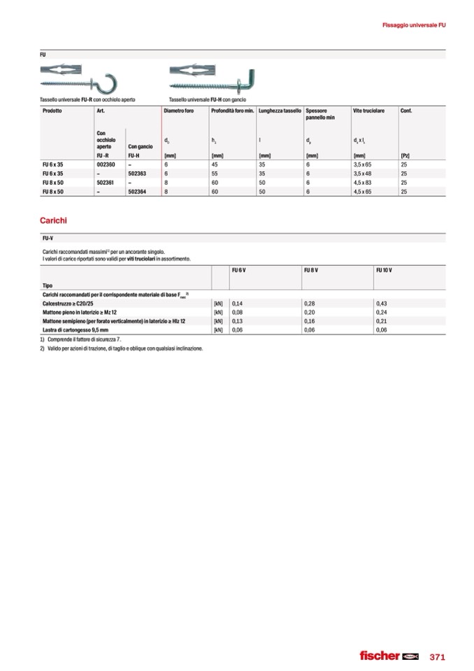 Tassello universale FU-H con gancio