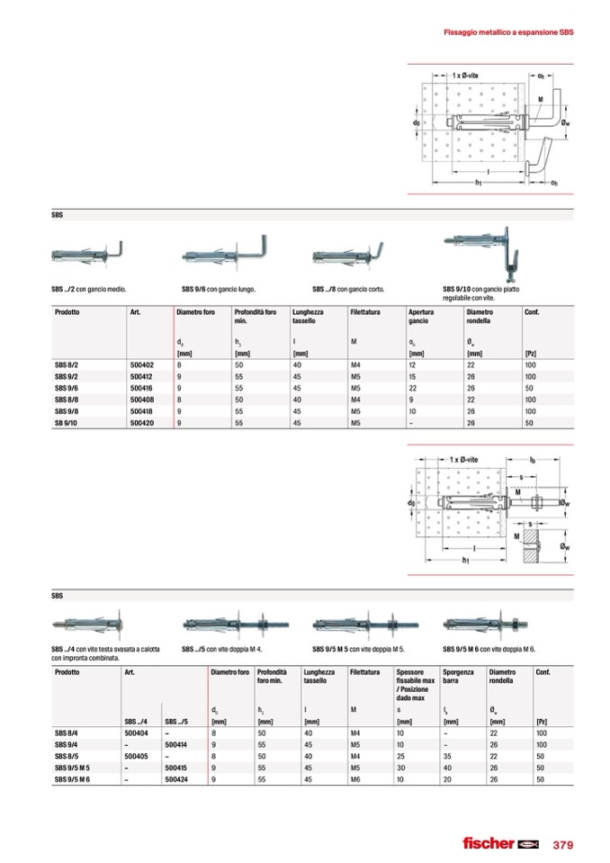 SBS 9/5 M 6 con vite doppia M 6.