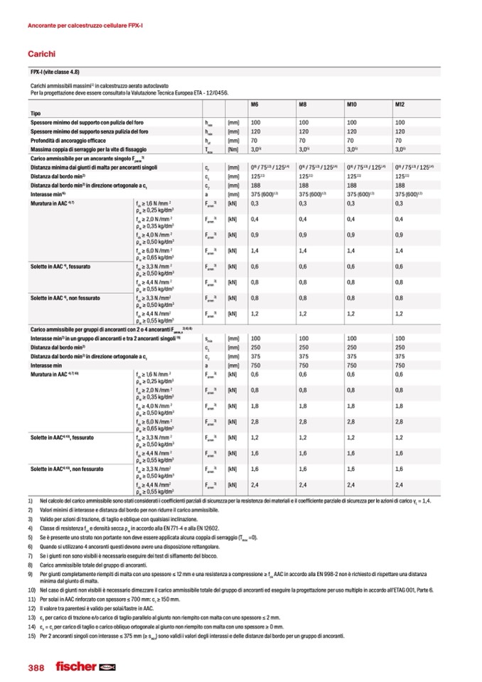 10) Nel caso di giunti non visibili è necessario dimezzare il carico ammissibile totale del gruppo di ancoranti ed eseguire la progettazione per uso multiplo in accordo all’ETAG 001, Parte 6.