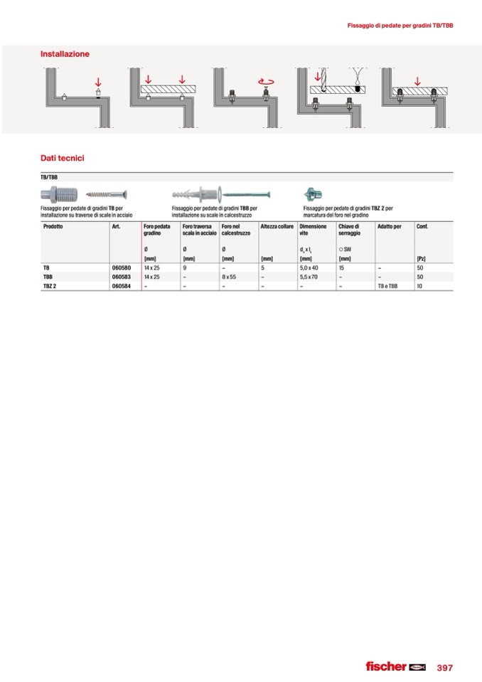 Fissaggio di pedate per gradini TB/TBB