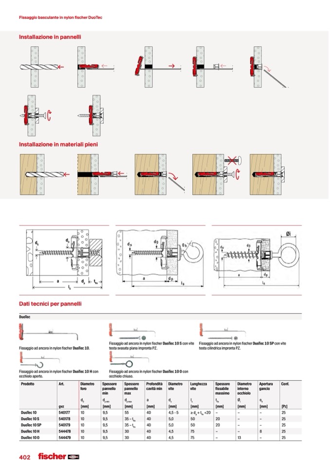Fissaggio ad ancora in nylon fischer DuoTec 10 H con