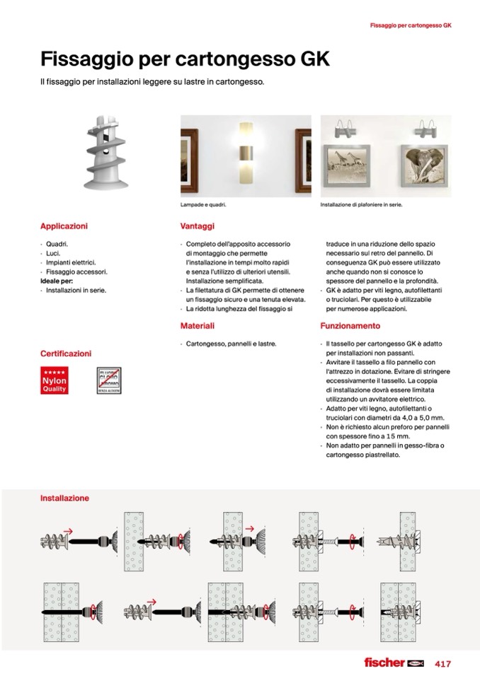 · Il tassello per cartongesso GK è adatto