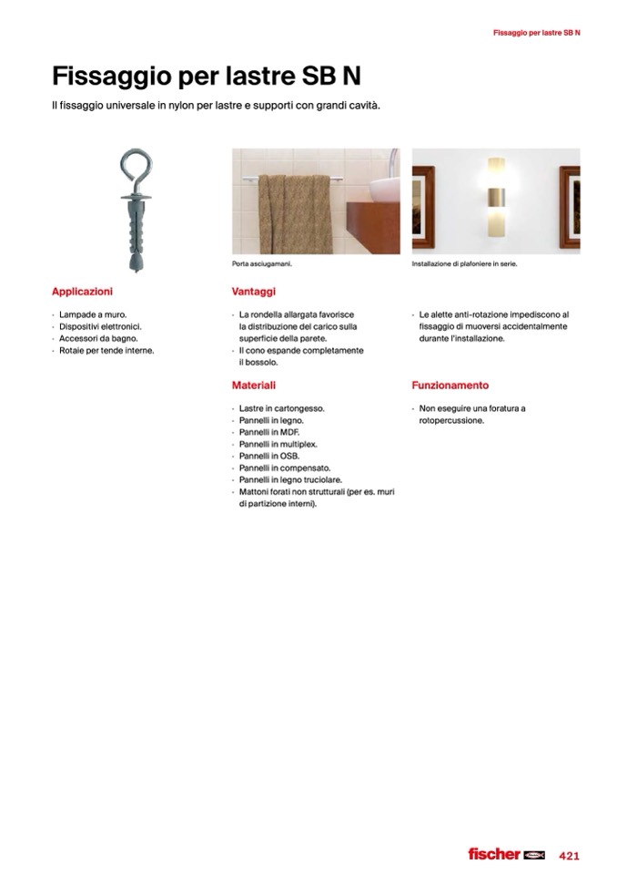 Il fissaggio universale in nylon per lastre e supporti con grandi cavità.