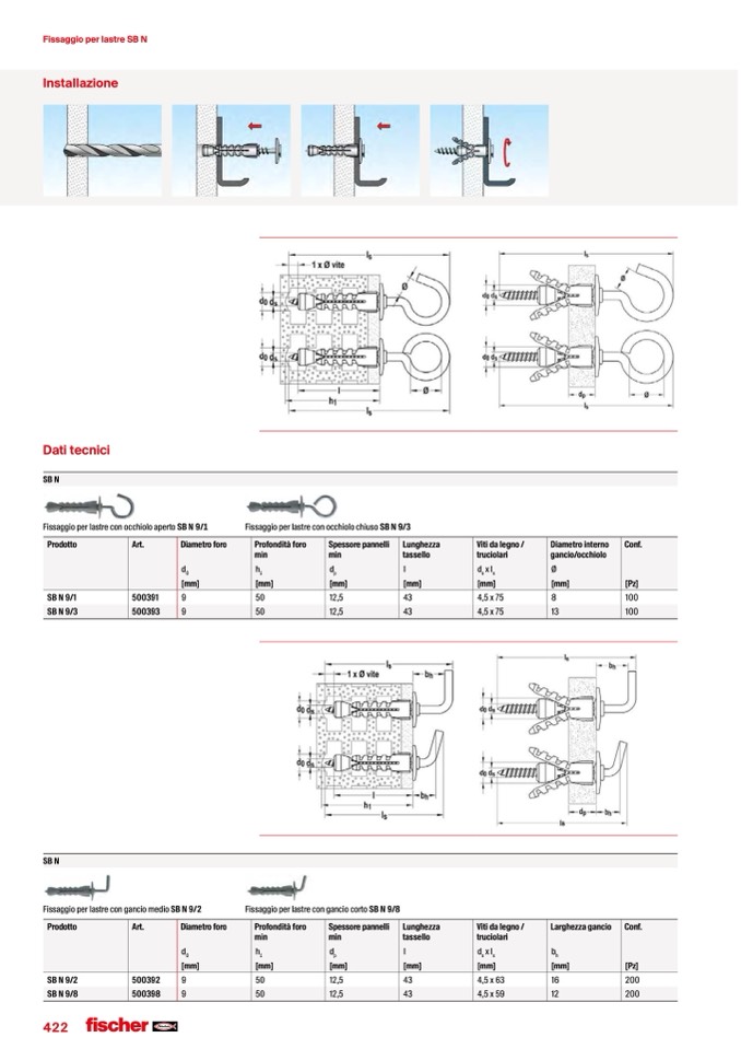 Fissaggio per lastre con occhiolo chiuso SB N 9/3