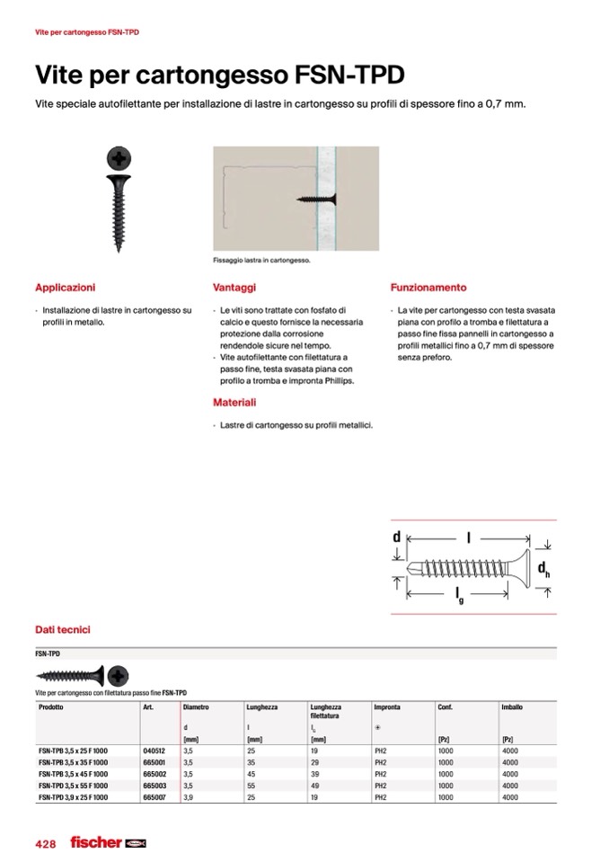 Vite per cartongesso con filettatura passo fine FSN-TPD