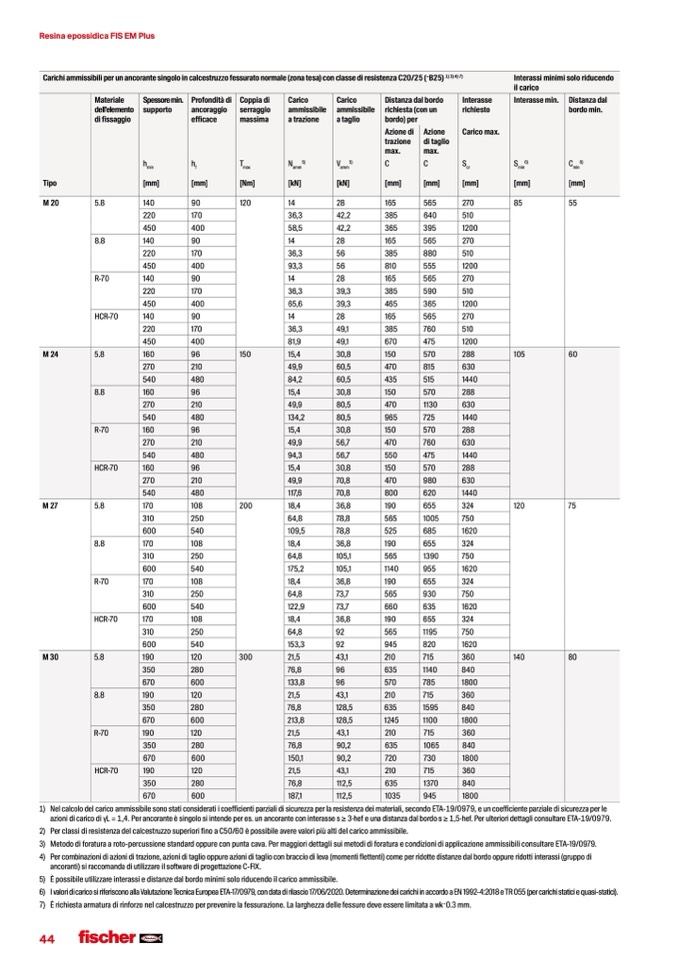 azioni di carico di γL = 1,4. Per ancorante è singolo si intende per es. un ancorante con interasse s ≥ 3·hef e una distanza dal bordo s ≥ 1,5·hef. Per ulteriori dettagli consultare ETA-19/0979.