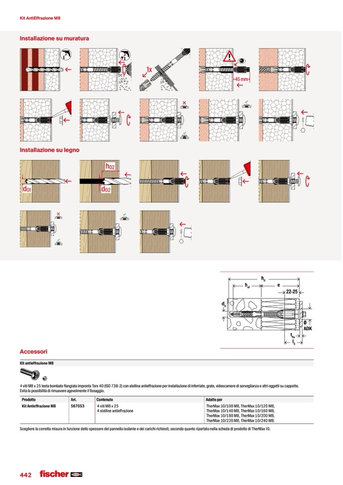 Scegliere la corretta misura in funzione dello spessore del pannello isolante e dei carichi richiesti, secondo quanto riportato nella scheda di prodotto di TherMax 10.