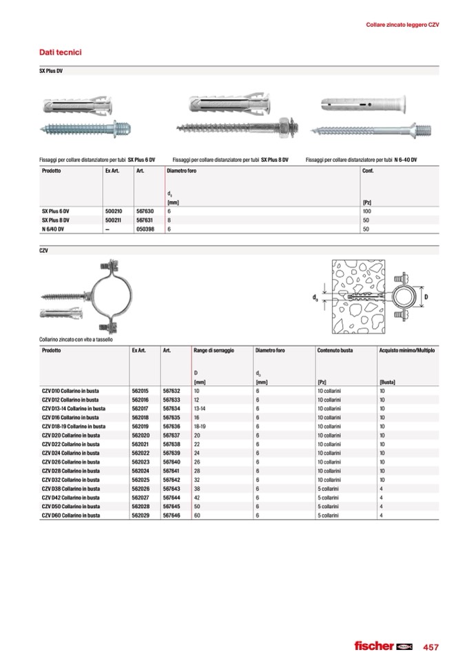 Fissaggi per collare distanziatore per tubi SX Plus 6 DV