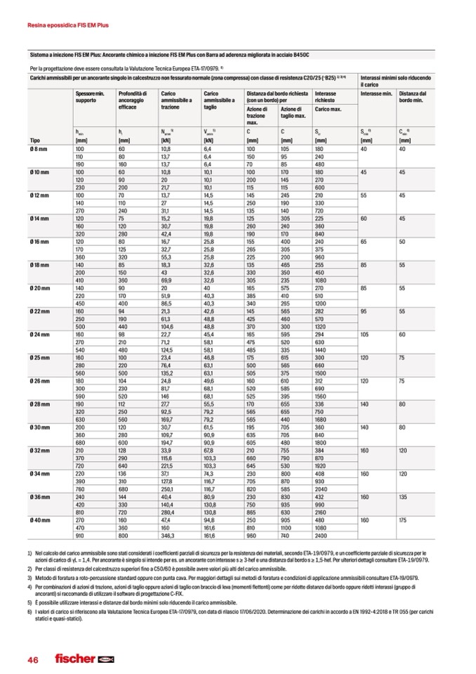 6) IvaloridicaricosiriferisconoallaValutazioneTecnicaEuropeaETA-17/0979,condatadirilascio17/06/2020.DeterminazionedeicarichiinaccordoaEN1992-4:2018eTR055(percarichi