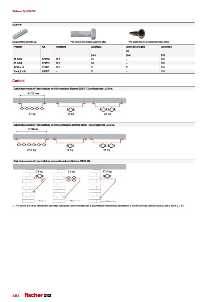 per staffatura a mensola mediante Sistema QUICK-FIX.