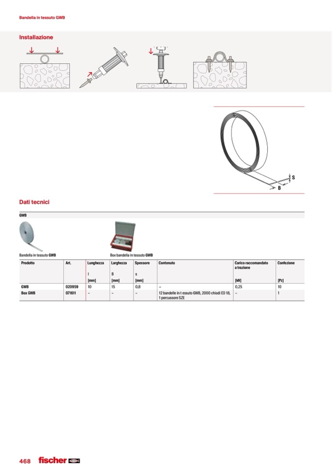 12 bandelle in t essuto GWB, 2000 chiodi ED 18,