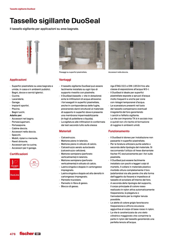 Il tassello sigillante per applicazioni su aree bagnate.