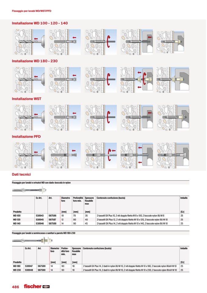 Fissaggio per lavabi a semincasso e sanitari a parete WD 180-230