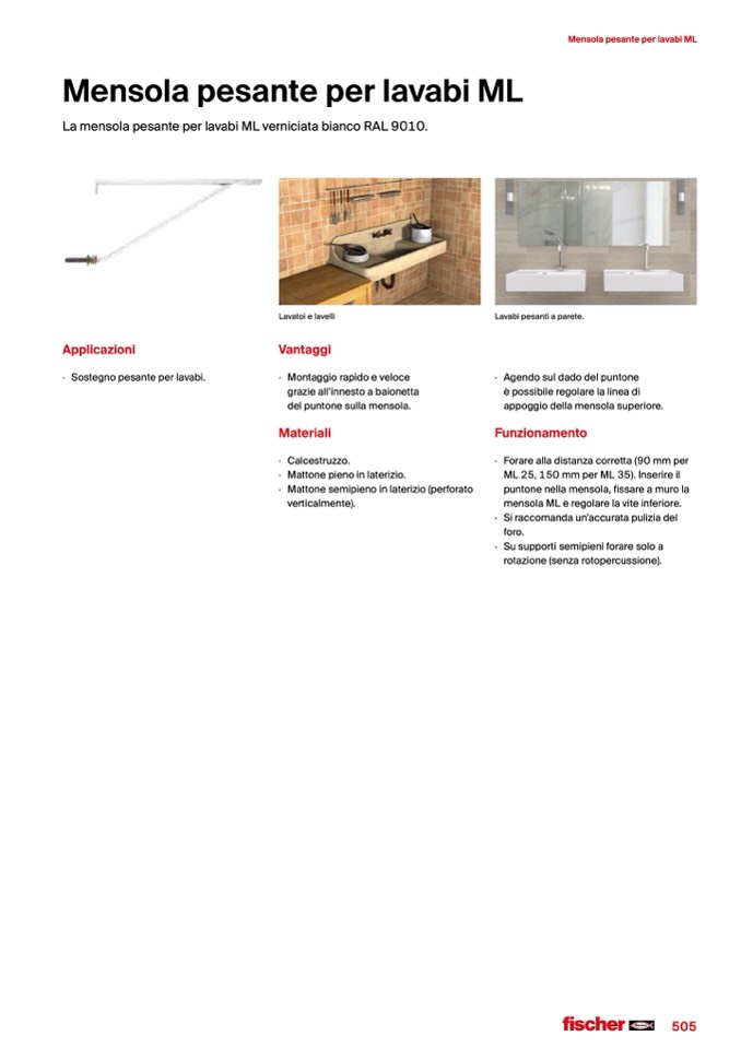 La mensola pesante per lavabi ML verniciata bianco RAL 9010.