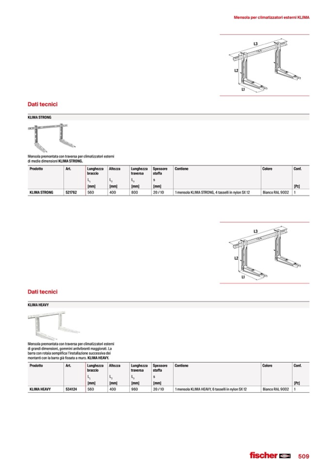1 mensola KLIMA STRONG, 4 tasselli in nylon SX 12