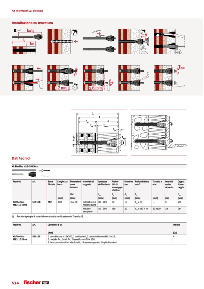 2 barre filettate M12x300, 2 coni isolanti, 2 perni di riduzione M12-M10,
